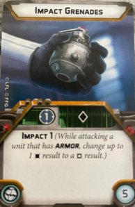 Cassian is the current Rebel hotness and the starting point for a lot of lists lately. In a list that wants to sit at range 3 or 4 and just plink away while soaking up shots, Cassian is even better. Sit him at range 5+ and slowly walk him towards an objective each turn (thanks to the Cumbersome change) while easily pushing one or two crits through with Marksman, then switch to the pistol mode and clean up. He’s fantastic and shouldn’t really start getting shot until late game if you’ve left your Pathfinders in good spots to tempt your opponent to invest in shooting them.