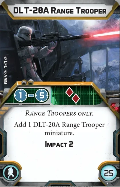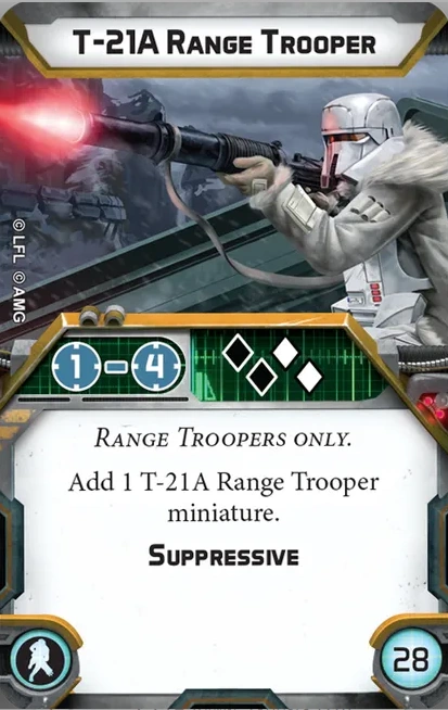 Range Troopers are way too expensive to be used for activation padding. If you’re looking for a range four unit to bump up your activation count, then check out the Shoretrooper Mortar. If you’re looking for firepower, then a unit of Stormtroopers with the HH-12 are the exact same price (60 points), will hit harder and consume one of the mandatory corps slots.