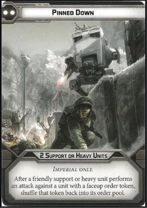 As close to an “auto-include” as you can get. Returning order tokens to the bag is huge, and is one of the few times that splitting the dice pool of the Range Troopers is worth it (the DLT-20A can offer you the possibility to strip almost any order token when combo-ed with a move). With this card you could potentially return up to six order tokens to the order pool! Or to put it more simply, you’ll force your opponent to activate the units that received orders very quickly or lose the order control they just worked to earn. Pinned Down can activate AI on Droid Troopers, stop fire-supports, hamper Take That Clankers, shut down Rule With Respect, make Anakin’s day rough, etc. The versatility and power of this card makes it hard for me to envision a command hand that doesn’t include it.