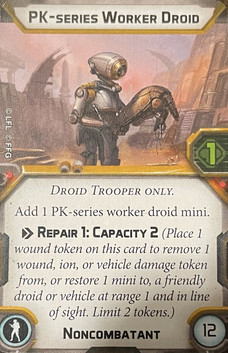 Repair, Repair, Repair! Four repair charges means your opponent will have to really work hard to kill your BX droids and B2s. Nothing is more demoralizing than sending 8 hits at a BX unit, losing 2 to cover, losing 2 more to shields, losing 1-2 to dodges, then getting 1-2 wounds through only to have BOTH repaired back by PK droids! Remember, you can bring back models that died that same round even if a live model in the unit has a wound (full power B2 shots anyone?).
