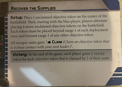 This calls for virtually the same tactics utilized in Recover the Supplies. I give the hostage to a B2 unit, make sure it has an order during round 1 for a double move, then spend the special surge to increase one of its movements to speed 2. If necessary, use your Disengage command card in round 2 to save your shiny metal rear from melee entanglements. While your hostage carrier is running back, your BX droids are hitting either your opponent’s weakest unit or a unit that is worth more than your B2’s (if you think your first B2 carrier won’t make it back alive).